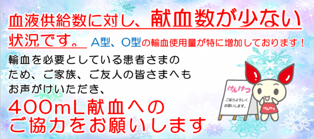 しかし季節の変わり目や年末年始前後は、献血に協力してくださる方が減り、血液の確保が難しくなる時期でもあります。