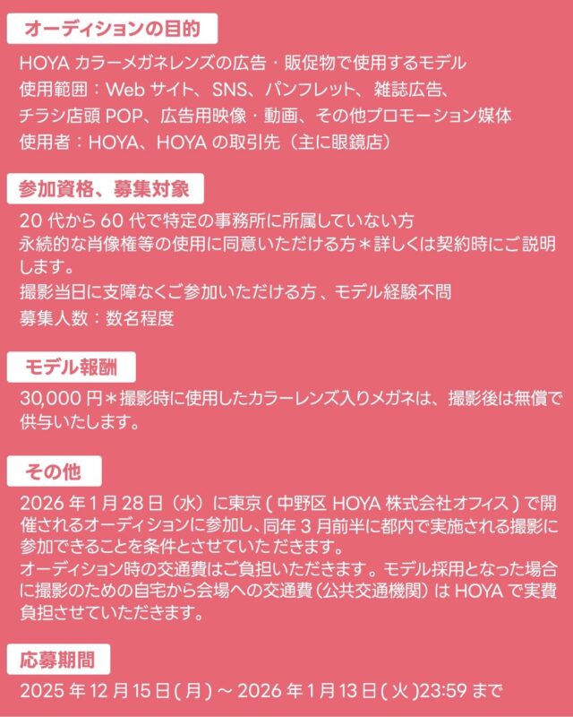 【カラーレンズモデル オーディションのご案内】