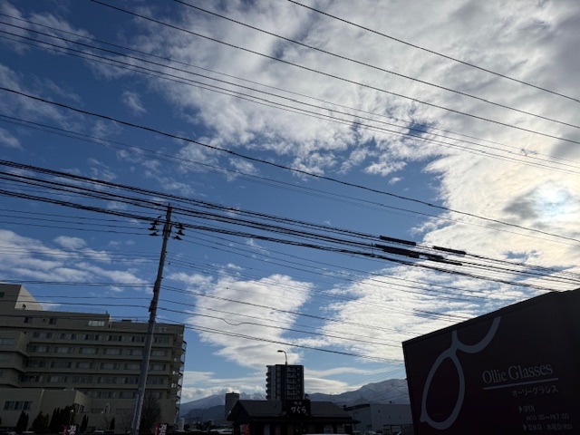 今日の山形市は曇り時々晴れで最高気温6℃最低気温0℃降水確率20%の予報です😀・・・・冷え込みが厳しくなってますので体調管理には気を付けて下さいね😊