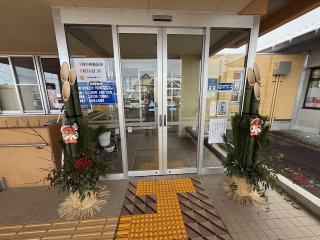 県内でも人気な日帰り温泉、入り口には立派な門松が飾られていて、新年らしい雰囲気です🤩