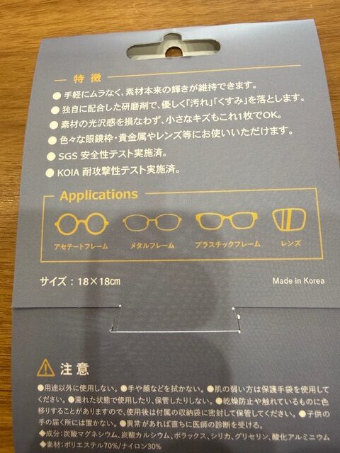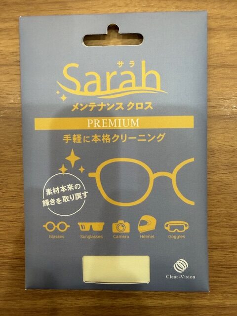 その名も「Sarah(サラ)」メンテナンスクロスPREMIUM。眼鏡をはじめ、サングラス・カメラ・ヘルメット・ゴーグルなど幅広い用途に使えるクリーニングクロスです👓
