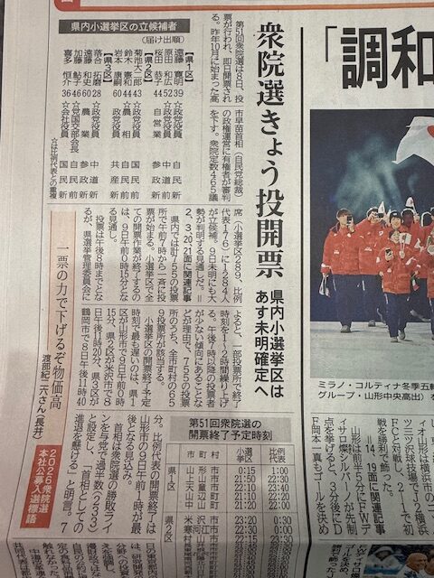 さて、今朝の新聞は冬季オリンピックの話題と衆議院議員選挙の記事😀